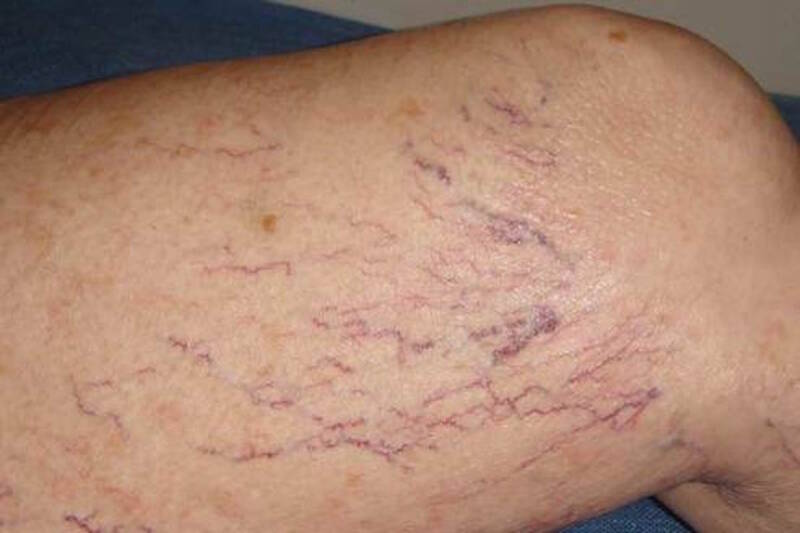In de huid van de benen kunnen ook verwijde haarvaatjes voorkomen. Ze gaan vaak samen met spataderen. Zijn ze over vervuld met aderlijk bloed en dus donkerrood van kleur, dan noemen we ze bezemrijs. Zijn ze over vervuld met slagaderlijk bloed en dus helderrood van kleur, dan noemen we ze penselen.